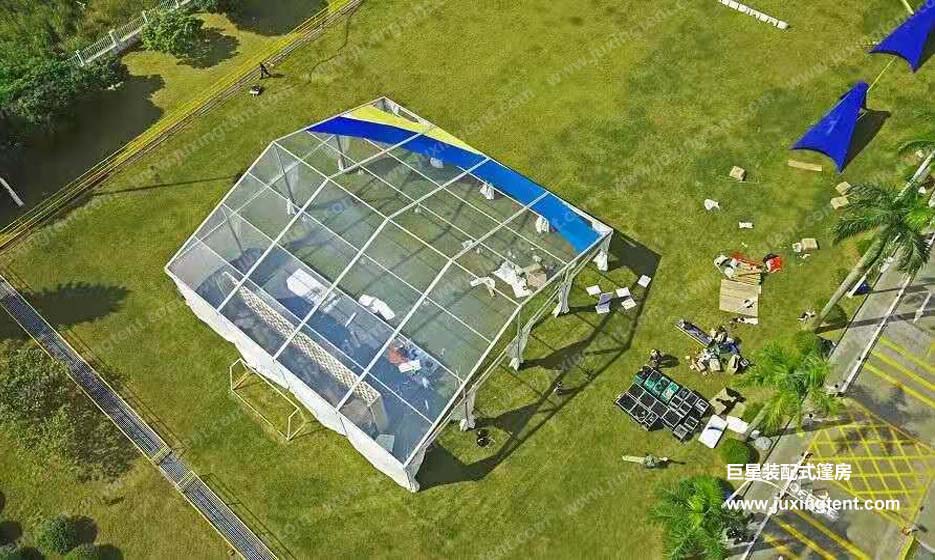 因篷房對搭建場所要求不高,可以搭建在草坪上、水泥地上、水面上等等,活動舉辦者可以更靈活地選擇自己想要搭建的場所。為了更為人性化,透明篷房還有各種形狀和靈活的結構組合,而且搭建簡易迅速、施工周期短,非常適合用于戶外短期或者長期的活動。